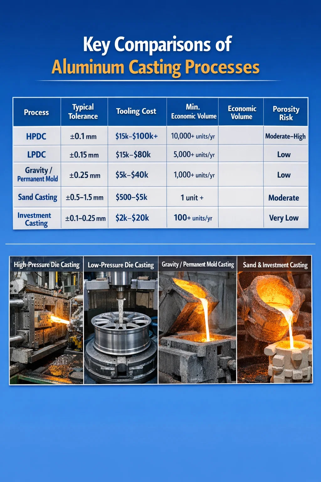 Không phải tất cả các phương pháp đúc nhôm đều có thể thay thế cho nhau. Mỗi quy trình có một hồ sơ chi phí riêng biệt, thời gian thực hiện dụng cụ, khả năng kích thước và phạm vi hoàn thiện bề mặt. Việc chọn sai quy trình có thể làm tăng thêm 30–60% chi phí cho mỗi bộ phận hoặc đẩy dung sai kích thước ra ngoài giới hạn chấp nhận được.