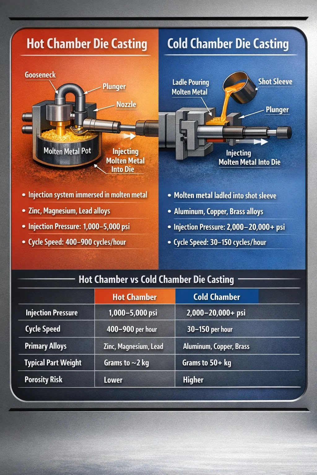 So sánh trực tiếp: Đúc khuôn buồng nóng và đúc buồng lạnh