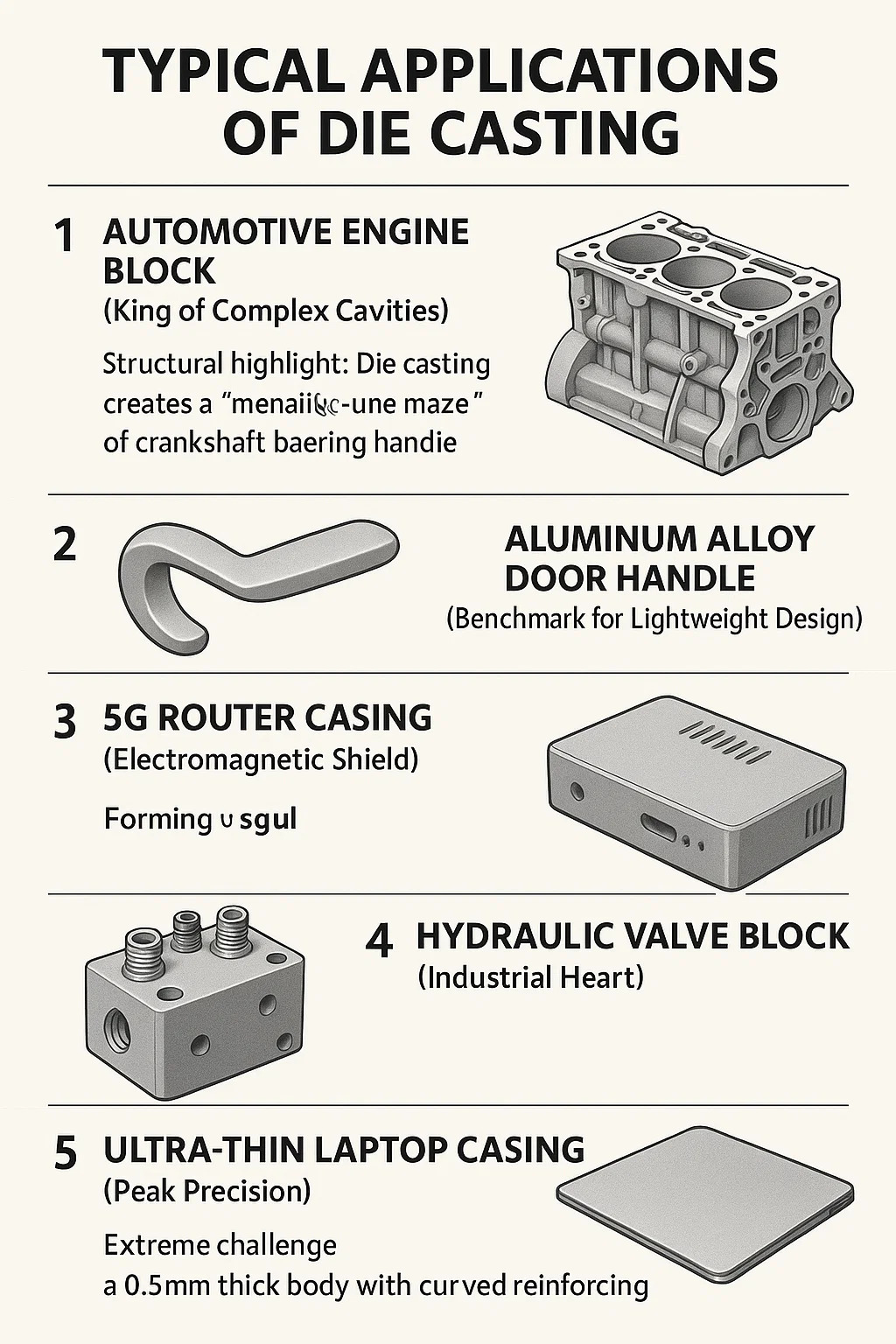 Điểm nổi bật về cấu trúc: Đúc chết tạo ra một "mê cung ba trong một" gồm vỏ ổ trục khuỷu, kênh nước làm mát và đường dẫn dầu trong một quy trình duy nhất, giống như đúc một mạng lưới các đường hầm kim loại liên kết với nhau trong một khuôn thép.