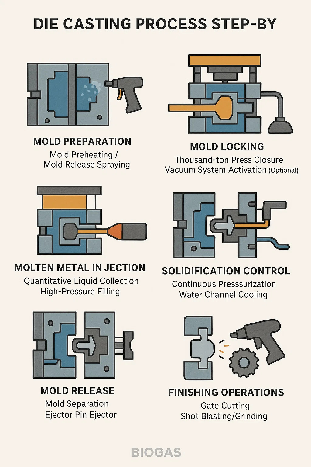 Làm nóng khuôn trước: Làm nóng khuôn thép đến 150-200°C để nhôm nóng chảy không bị bắn tung tóe hoặc đóng nguội.
